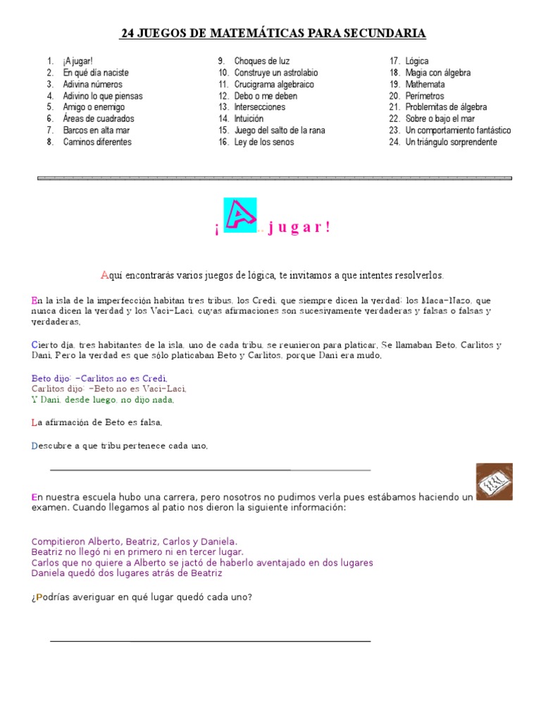 Juegos Matemáticos Para Secundaria / Tema Juegos De Ingenio Asignatura Razonamiento Matematico I E P Ciencia Juegos De Algebra Juegos Matematicos Para Imprimir Juegos Matematicos Secundaria. Archivo para la categoría juegos de matematicas para secundaria. Matematicas.me nace con la finalidad de que los alumnos aprendan matemáticas fácilmente. En qué día naciste adivina números adivino lo que piensas amigo o enemigo áreas d… Los juegos de logica o problemas de ingenio juegos matematicos para primaria y secundaria abecedario por. Allá vamos … juegos de matemáticas para secundaria.